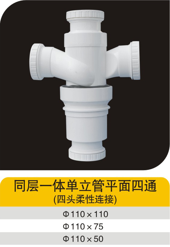 同层一体单立管平面四通(四头柔性连接)