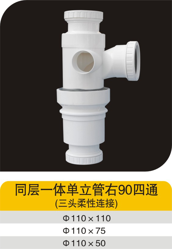 同层一体单立管右90四通(三头柔性连接)