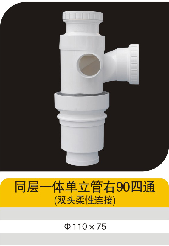 同层一体单立管右90四通(双头柔性连接)