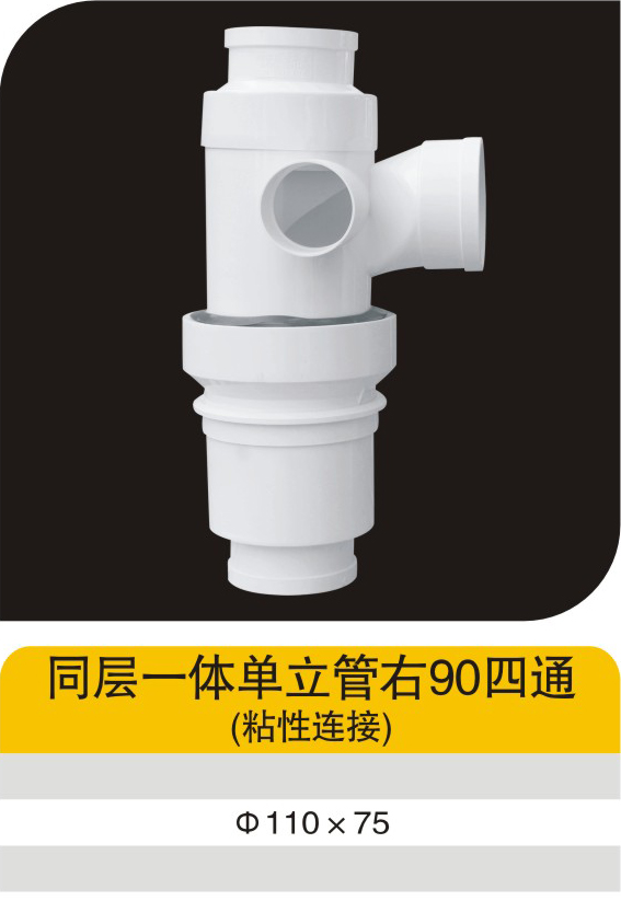 同层一体单立管右90四通(粘性连接)