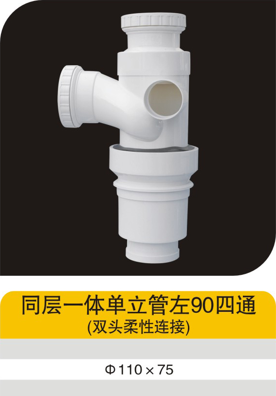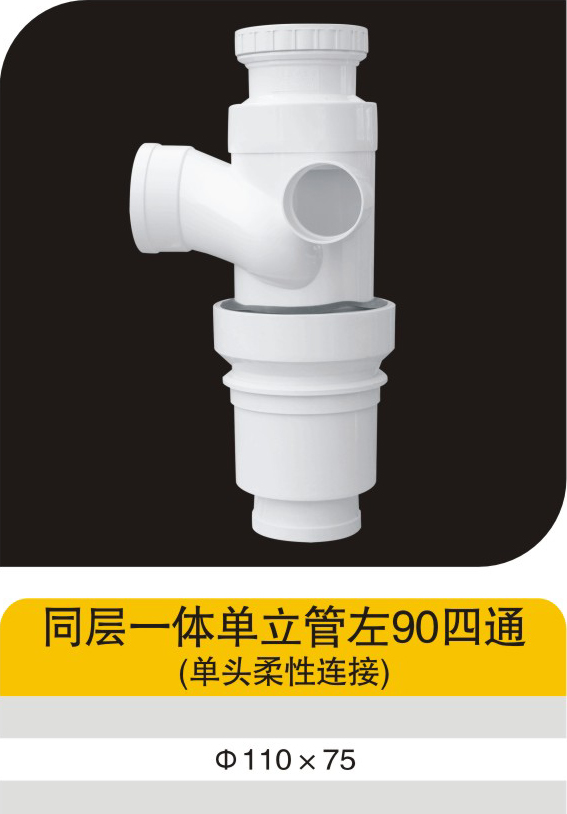 同层一体单立管左90四通(单头柔性连接)