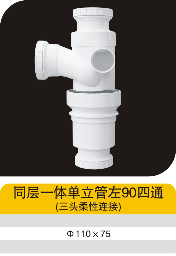同层一体单立管左90四通(三头柔性连接)